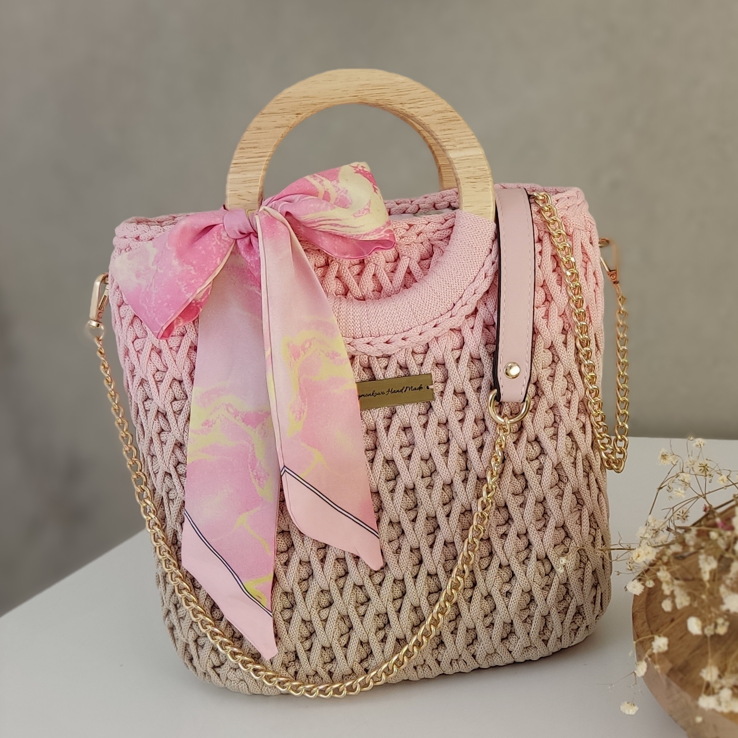 Torebka ombre różowo-beżowa wykonana ręcznie na szydełku.